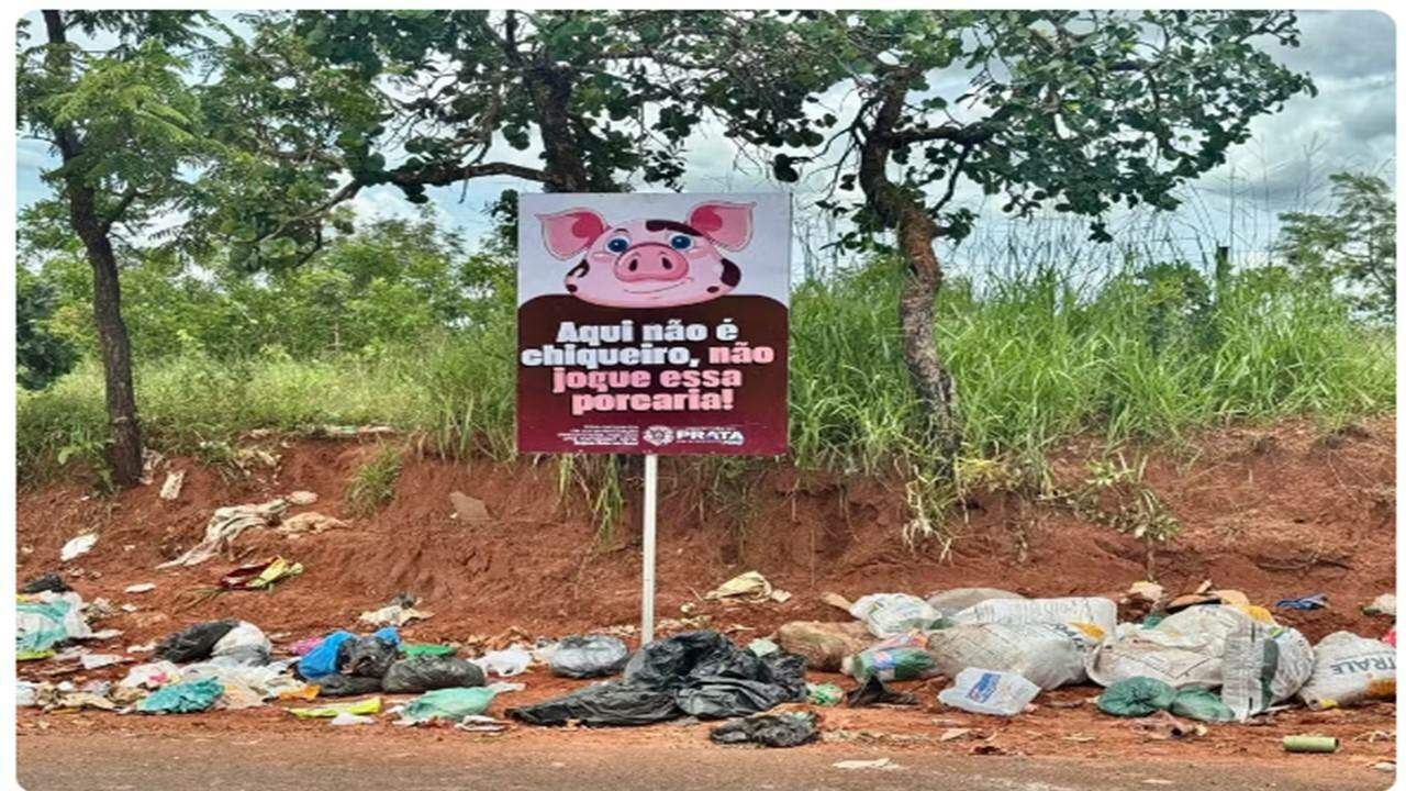 “Aqui só joga lixo quem é corno assumido.” Essa é a frase que ilustra um cartaz colocado em um terreno no município de Prata, em Minas Gerais.