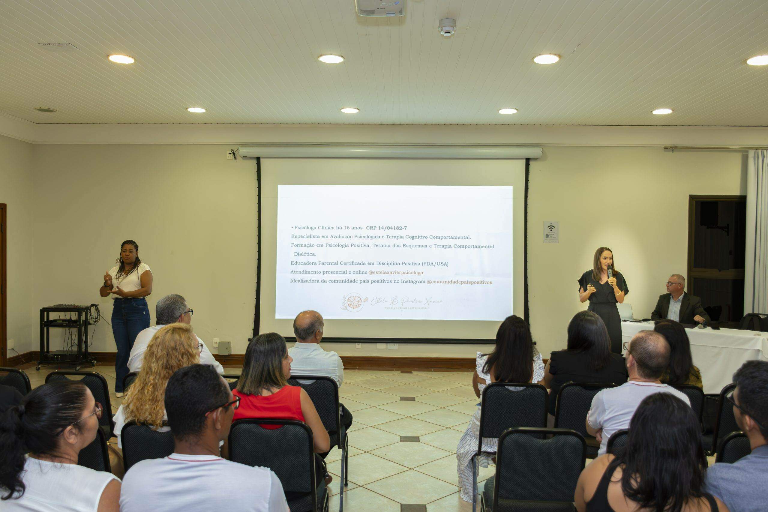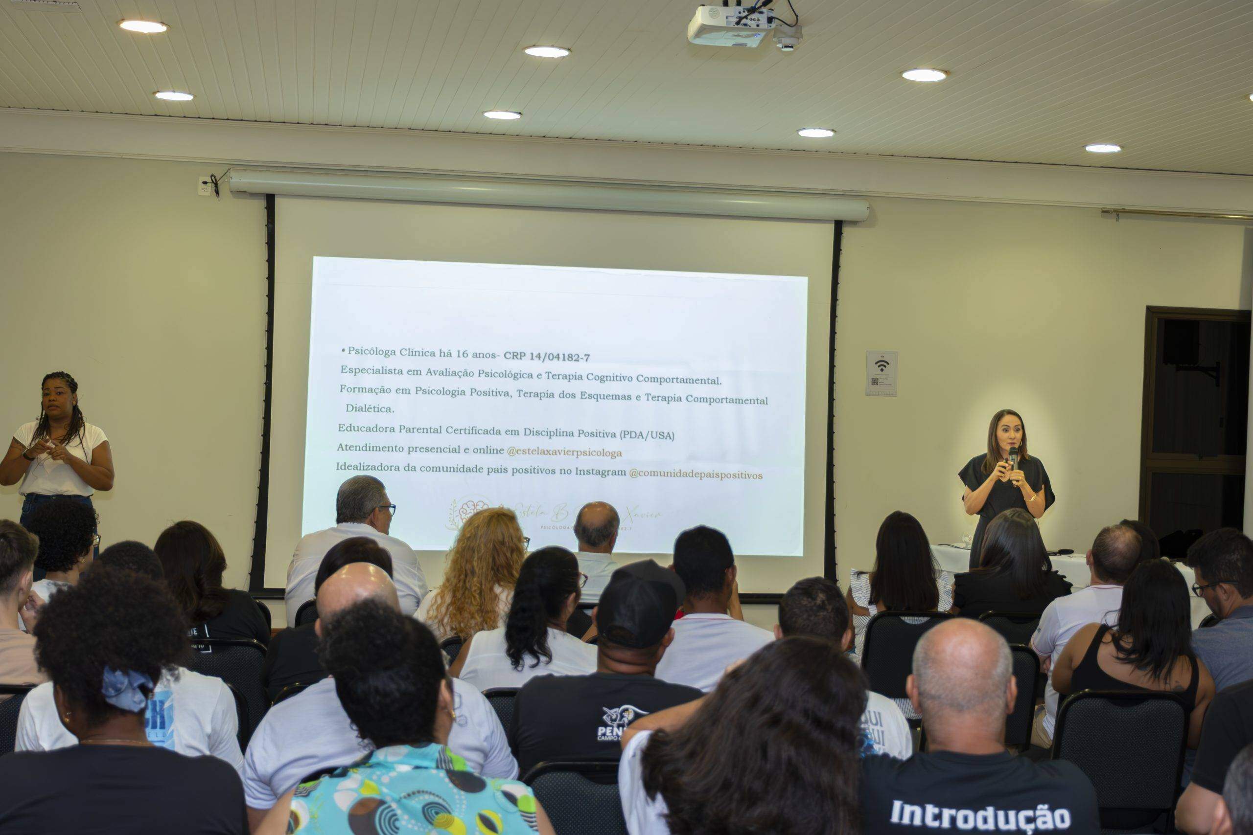 A palestrante, Psicóloga Estela Xavier, com 16 anos de atuação na área, sendo especialista em Avaliação Psicológica e Terapia Cognitiva Comportamental. Ela tem no currículo diversos cursos e eventos voltados para o tema e foi a idealizadora da Comunidade Pais Positivos, no Instagram. https://www.instagram.com/comunidadepaispositivos/