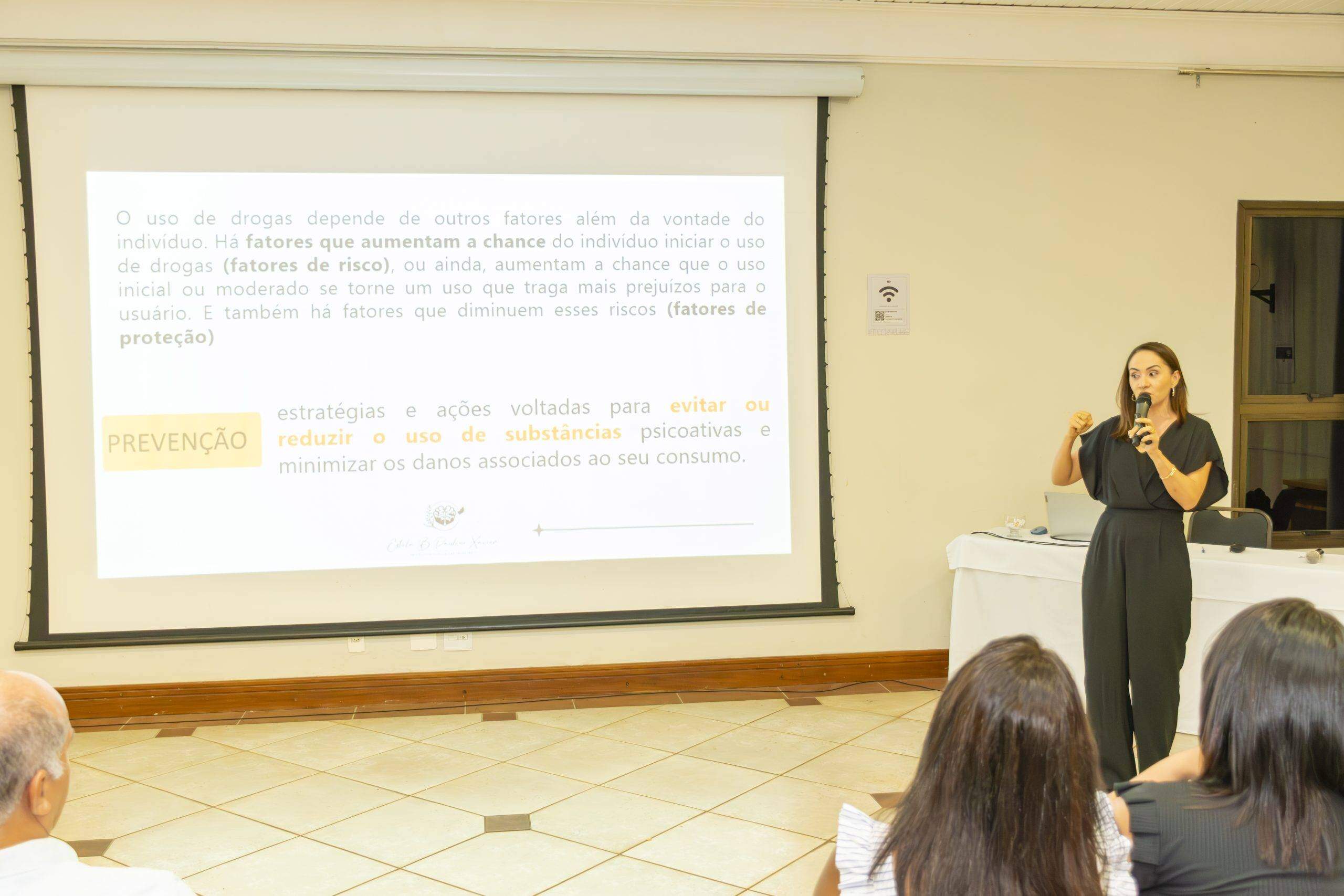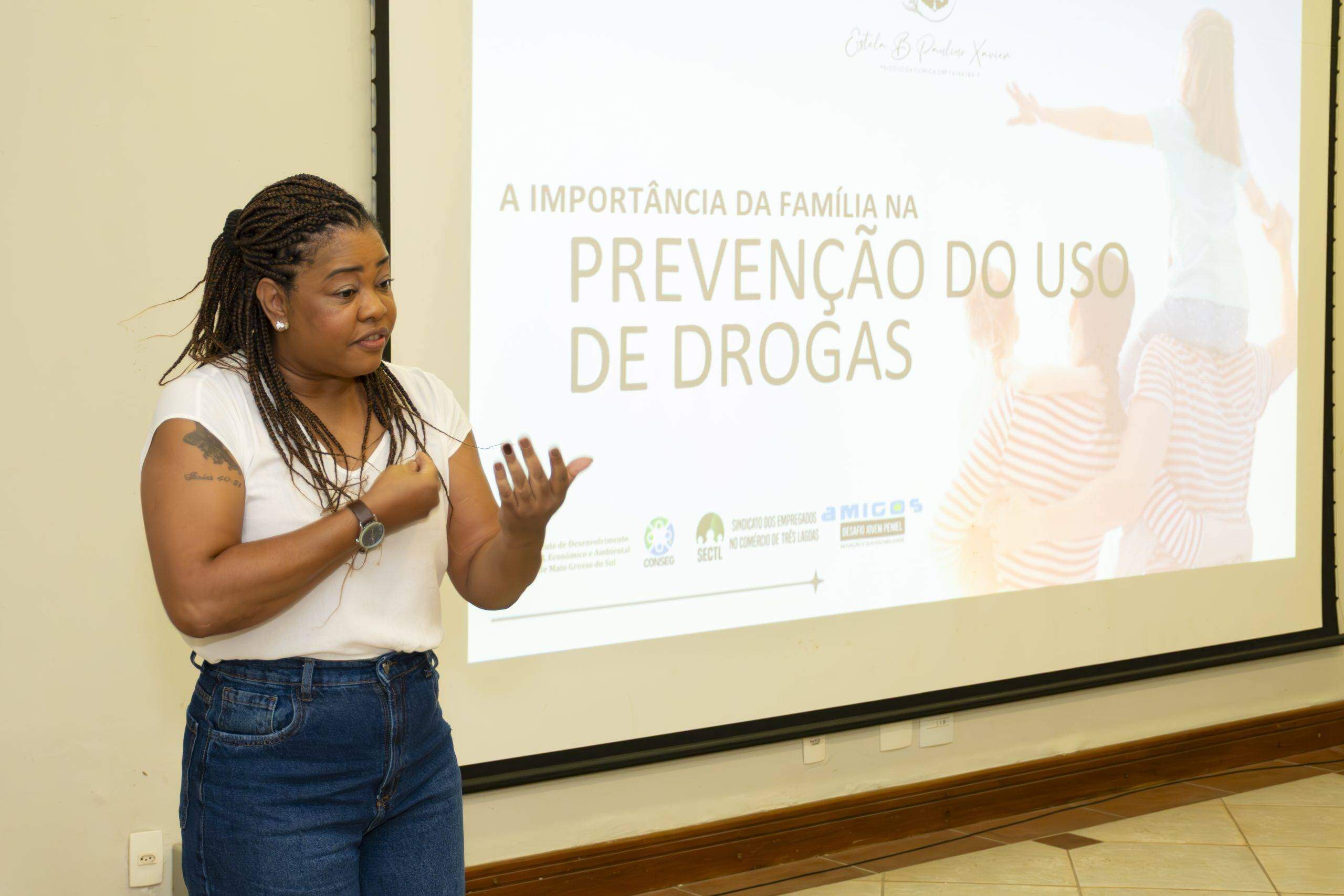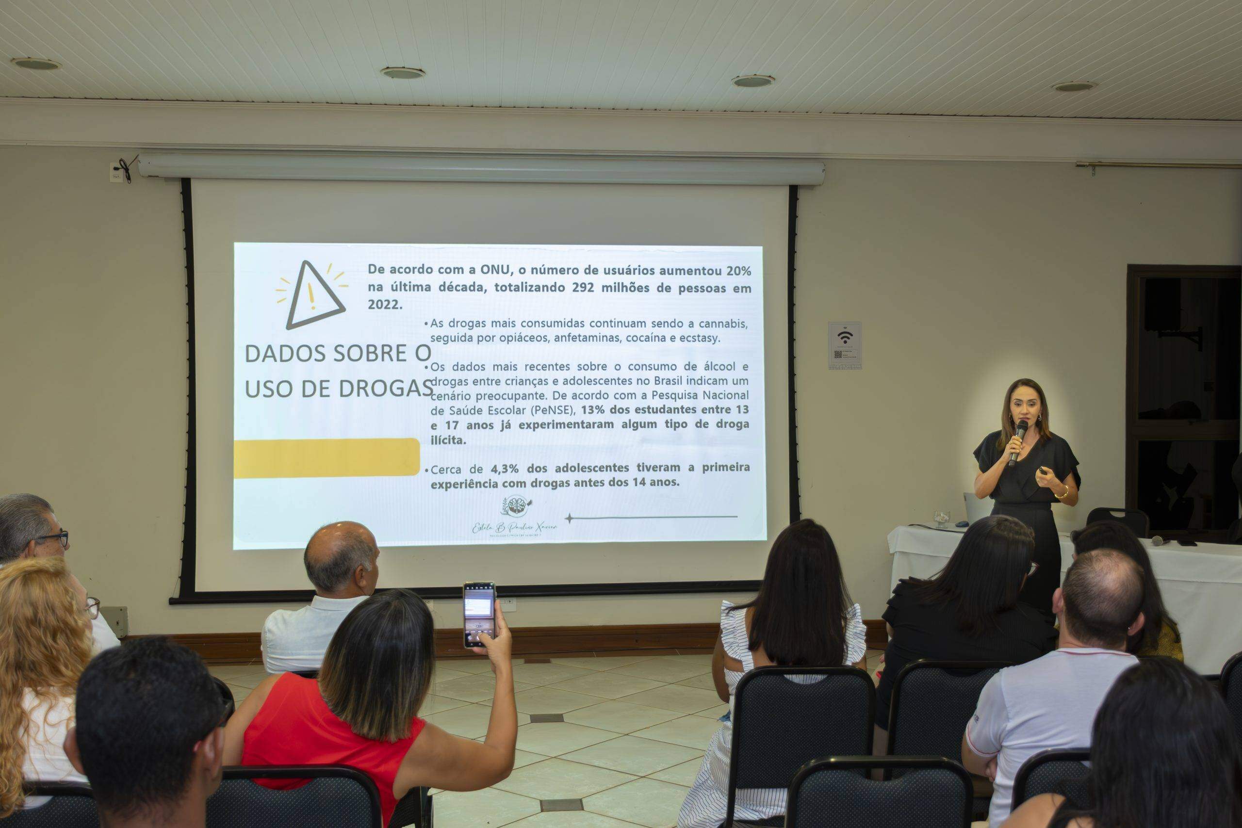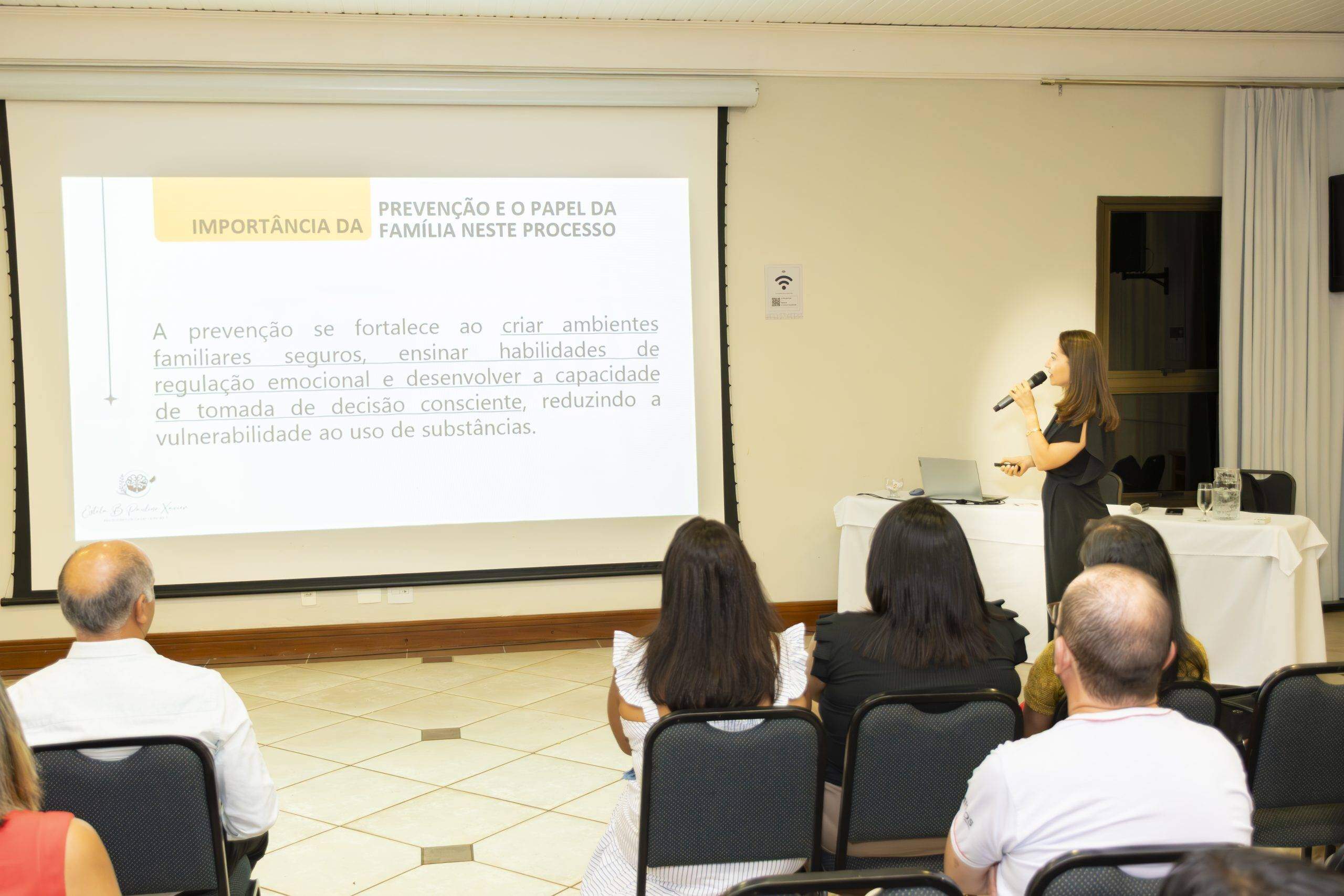 Durante a fala, ela utilizou linguagem simples e acessível, fez uso de gráficos e informações atualizadas sobre a importância da família nesta luta árdua, mas que pode ser vencida contra o uso de drogas. Muitas experiências e estratégias foram abordadas, no sentido de fortalecimento dos familiares na proteção dos jovens.