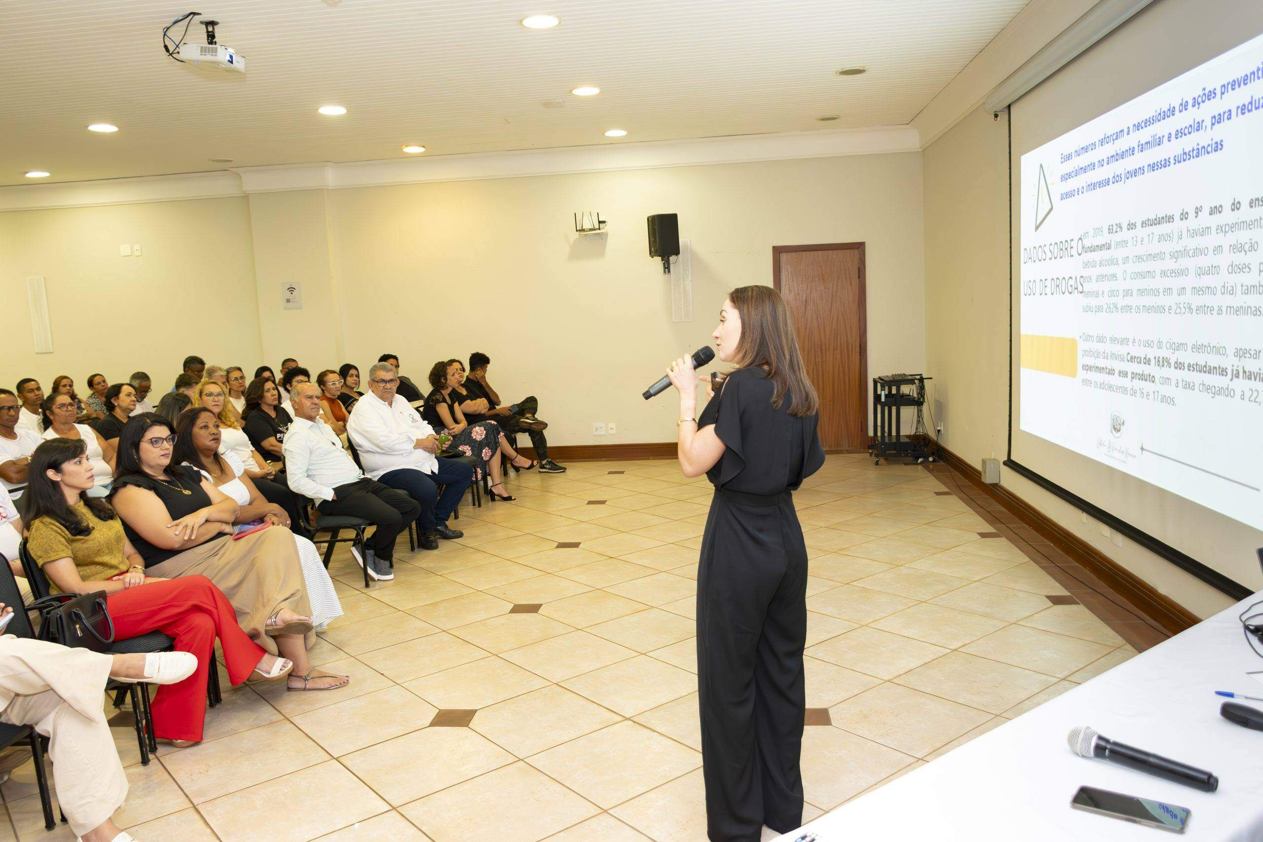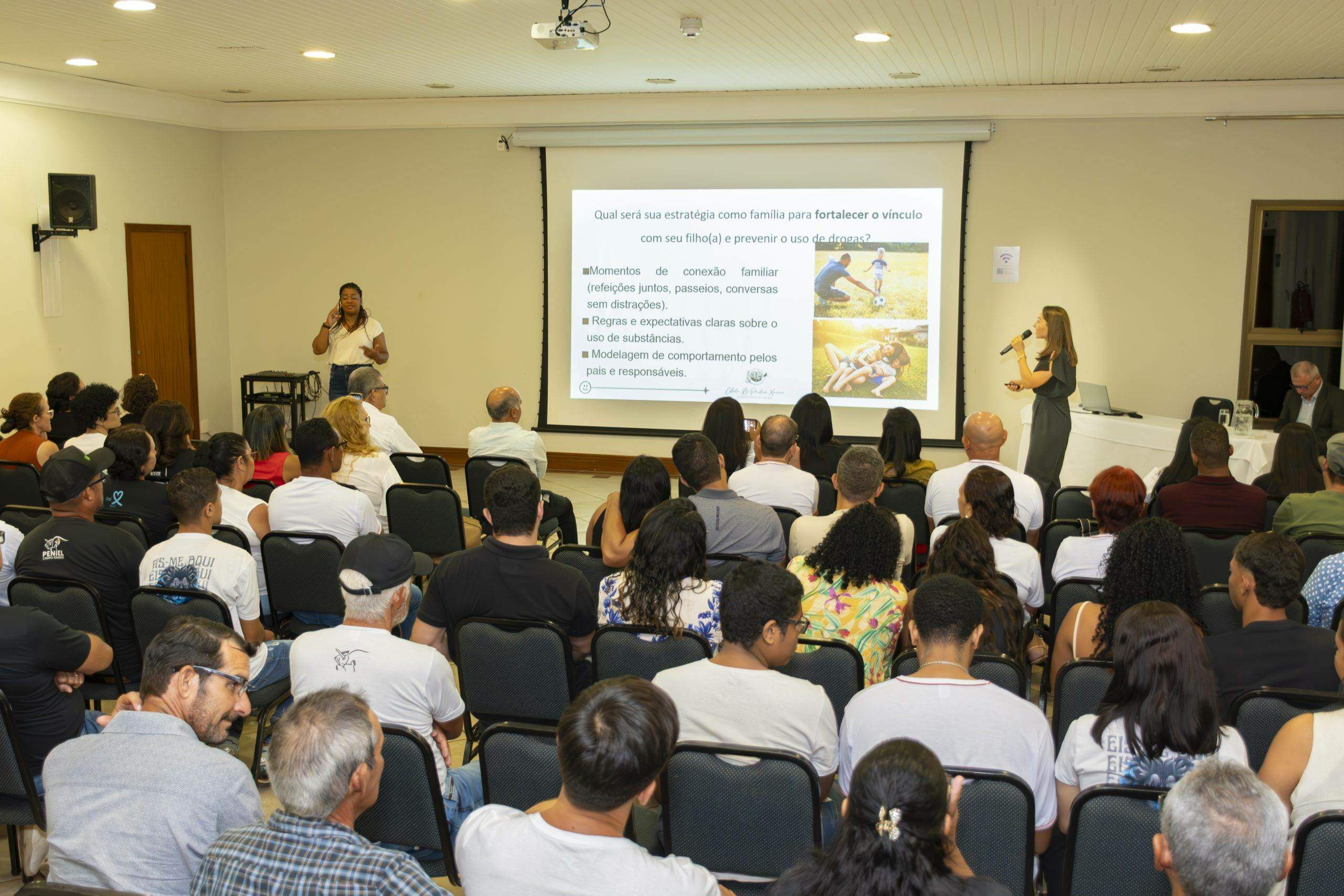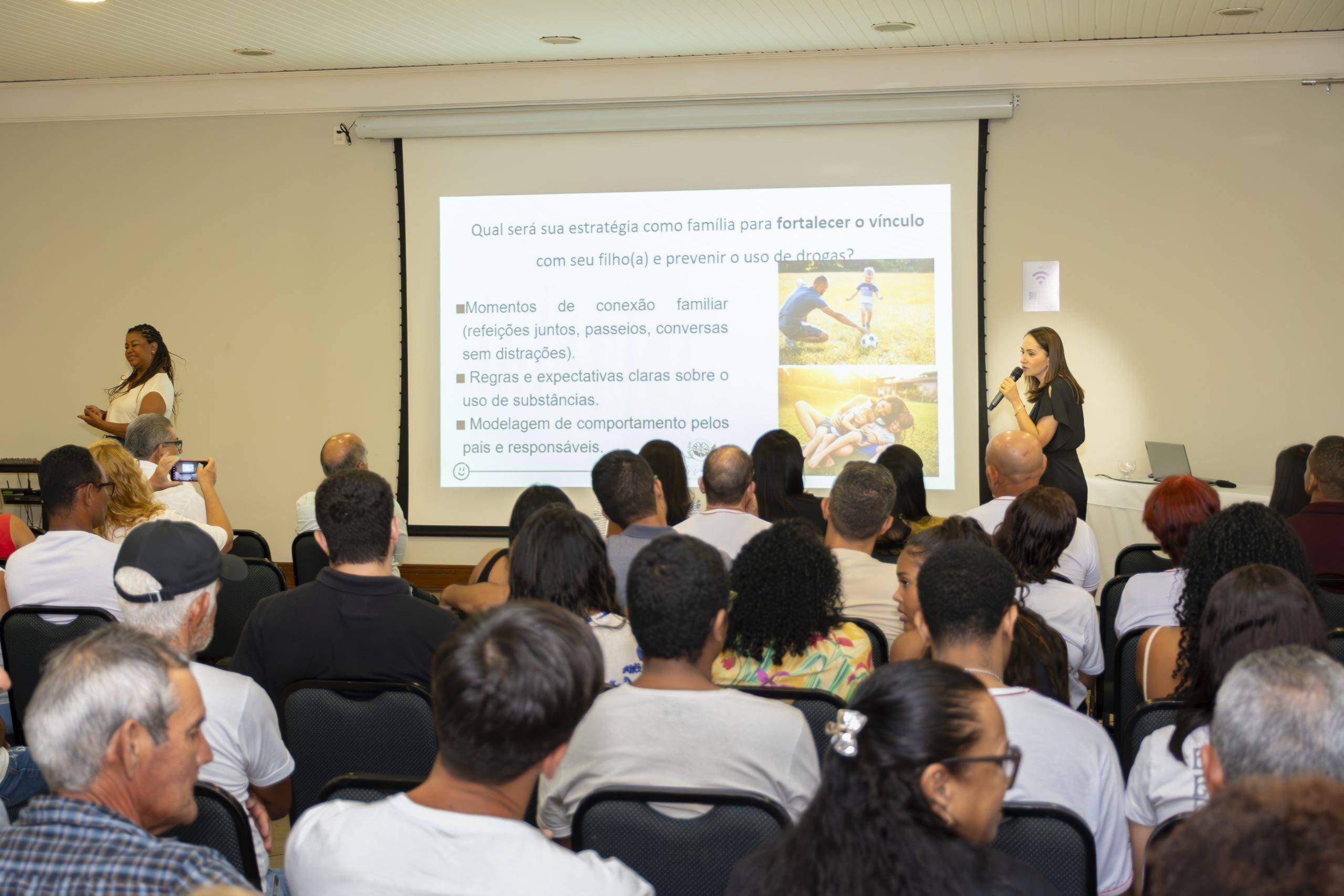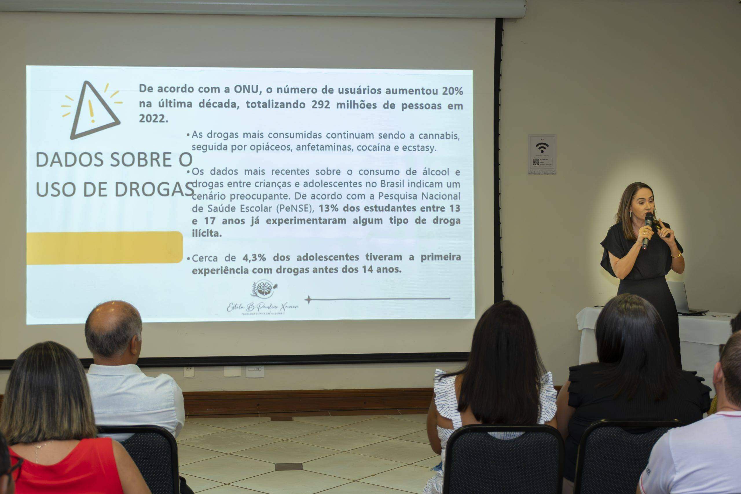 Durante a fala, ela utilizou linguagem simples e acessível, fez uso de gráficos e informações atualizadas sobre a importância da família nesta luta árdua, mas que pode ser vencida contra o uso de drogas. Muitas experiências e estratégias foram abordadas, no sentido de fortalecimento dos familiares na proteção dos jovens.