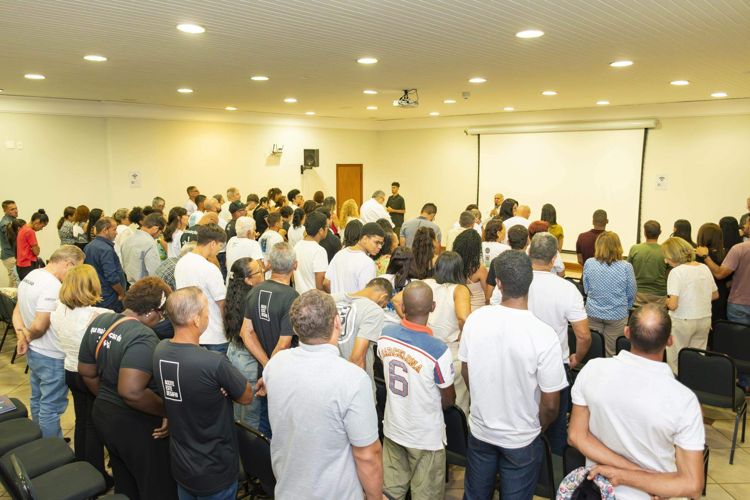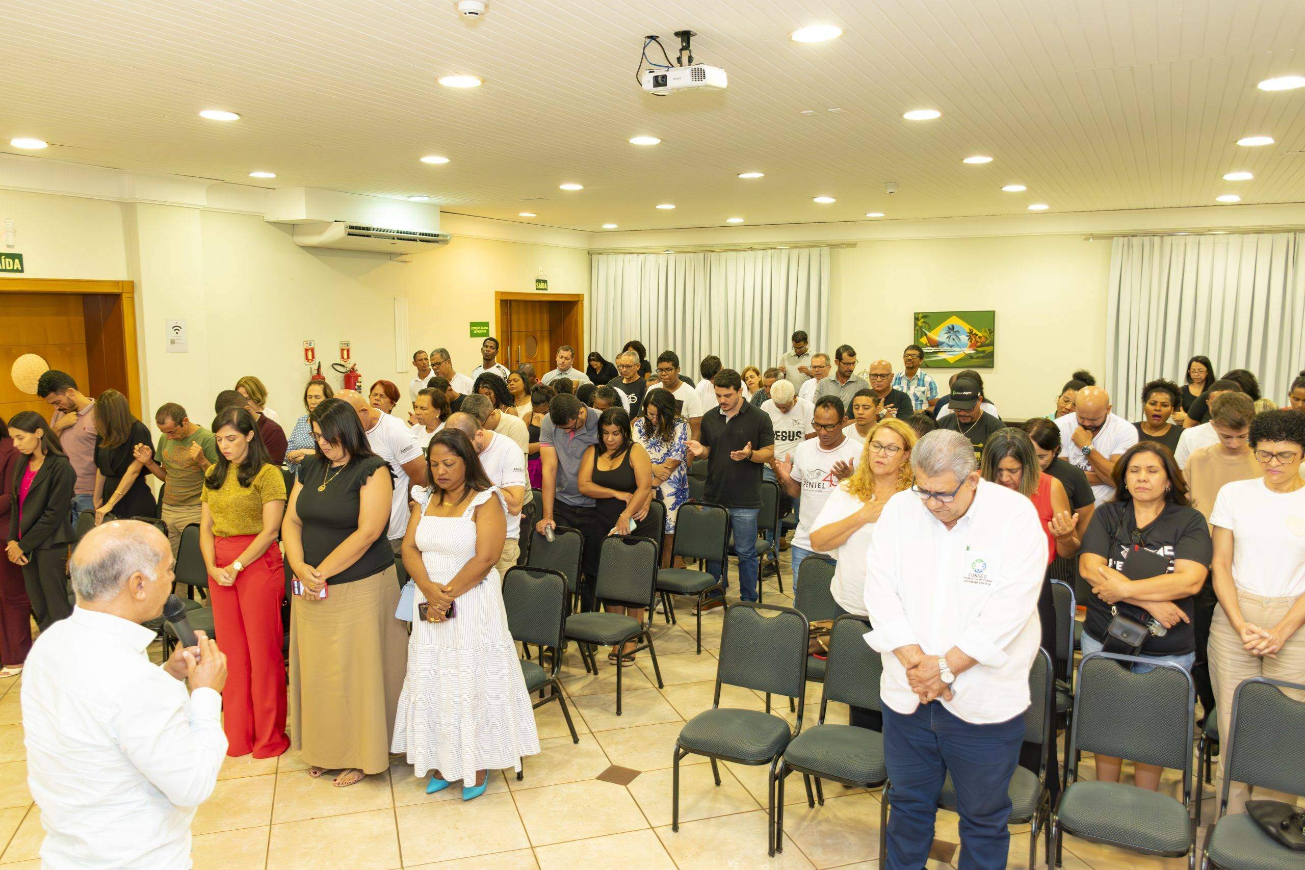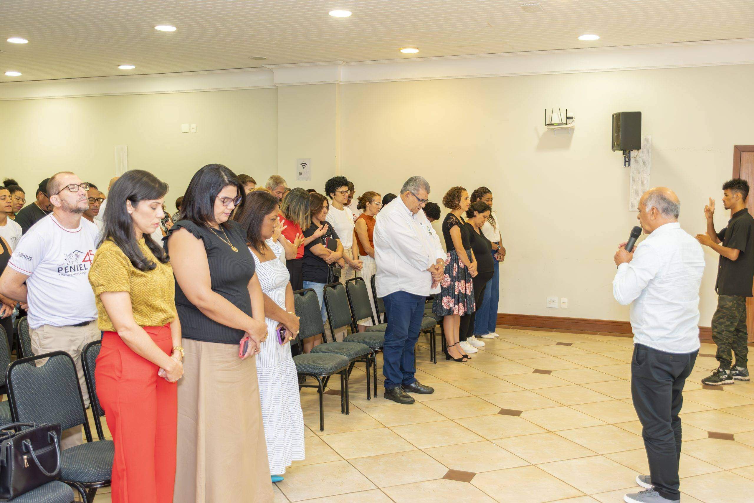 O encontro começou com oração do Pastor da igreja Peniel e diretor do Desafio Jovem Peniel, Wellington Antunes Correa.
