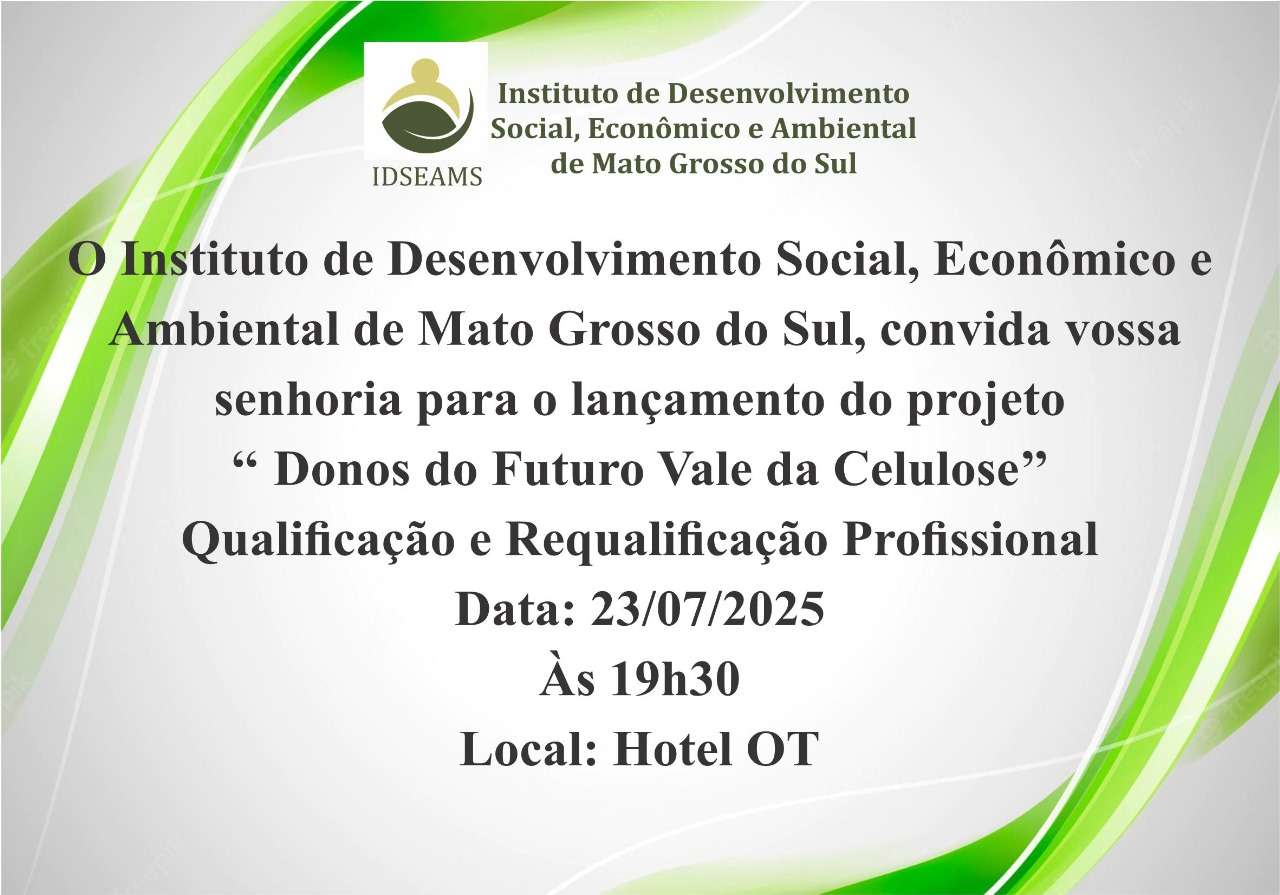 Você é convidado e convidada especial para o grande lançamento do Projeto DONOS DO FUTURO: VALE DA CELULOSE. O ato que certamente vai entrar para a história, está agendado para hoje (23), às 19h30 no salão de eventos do Hotel OT, localizado na Avenida Aldair Rosa de Oliveira (Circular da Lagoa Maior) em Três Lagoas.