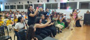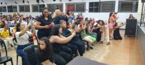 Os alunos, vestidos com camisetas cada grupo uma cor diferente. Veja o vídeo que emocionaram o público com uma breve apresentação. A Associação Nipo-Brasileira, que sediou o evento, proporcionou um ambiente acolhedor para a celebração familiar.
