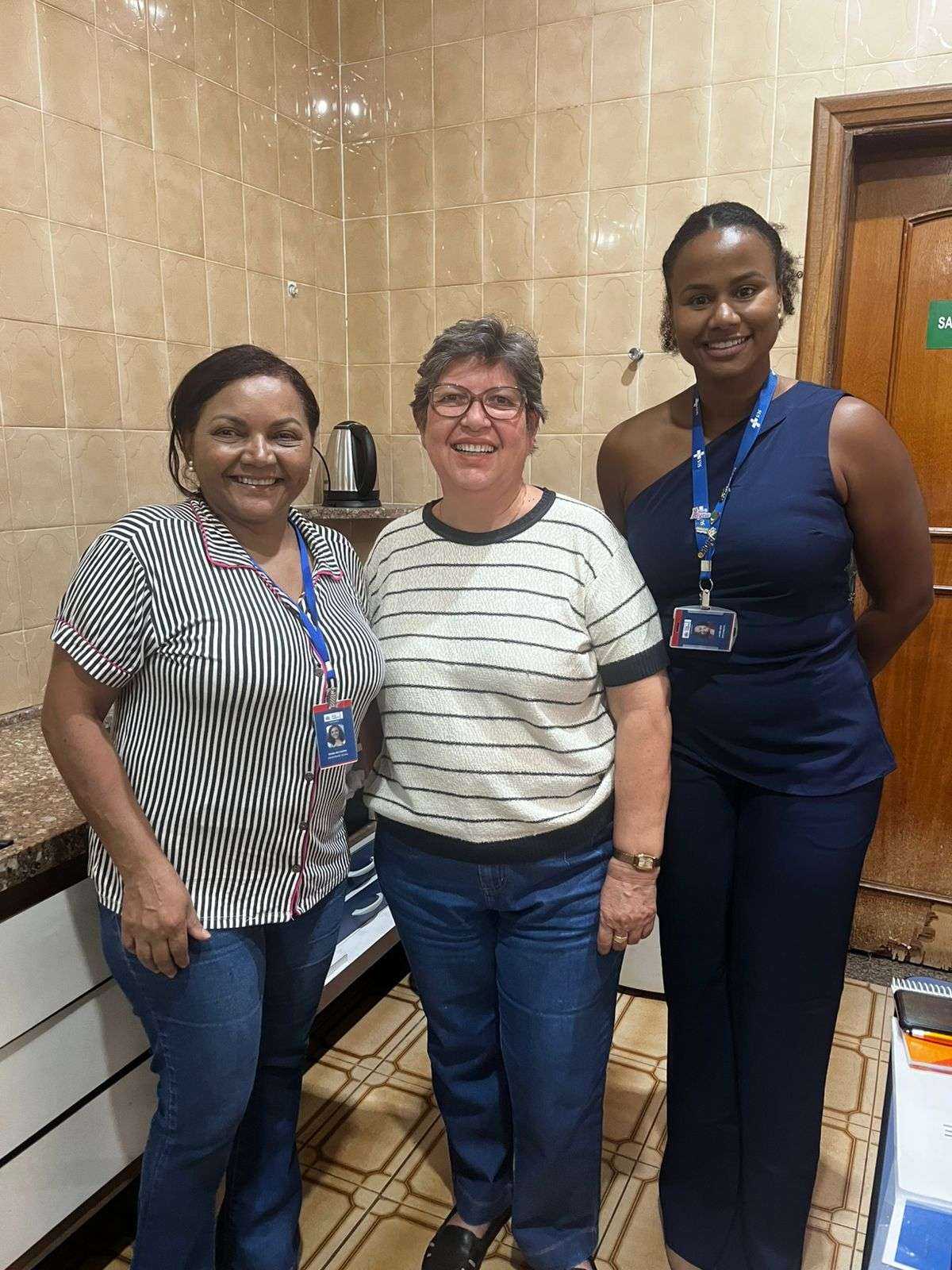 Esquerda para direita: Carminha, Edilene e Laura Fernandes (Coordenadora do núcleo de Educação Permanente em Saúde do município de Três Lagoas)